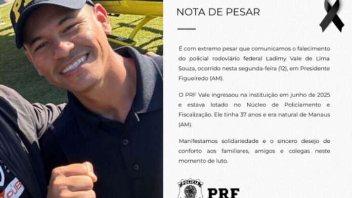 Manaus (AM) – A Polícia Rodoviária Federal (PRF) está em luto após a confirmação da morte do agente Ladimy Vale de Lima Souza, de 37 anos, ocorrida na madrugada desta segunda-feira (12/1). O policial foi vítima de um grave acidente de trânsito no KM 1008 da rodovia BR-174, no município de Presidente Figueiredo, no interior do Amazonas.