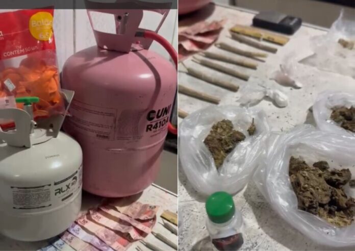 Entre os itens apreendidos pelas forças de segurança na madrugada deste sábado (28/03), estavam cilindros de gás hélio e balões, materiais que, embora pareçam inofensivos, eram utilizados para causar euforia e perda temporária de consciência nos frequentadores.