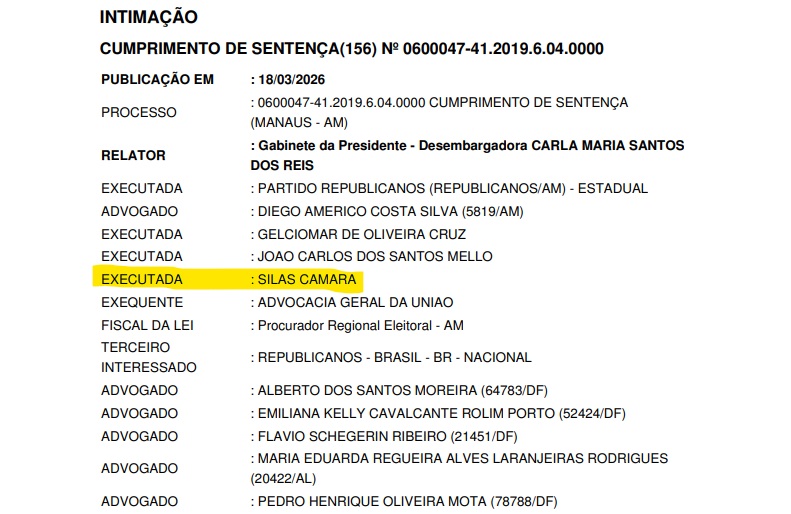 Embora o processo trate de um cumprimento de sentença por dívidas de prestação de contas de 2018, as consequências para Silas Câmara extrapolam o campo financeiro e entram na esfera da Lei da Ficha Limpa.