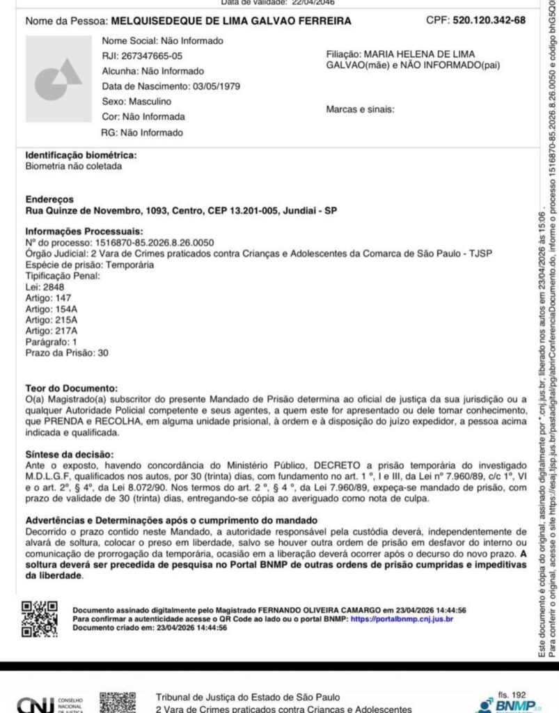 Manaus (AM) ─ A prisão do treinador de jiu-jitsu Melqui Galvão, de 47 anos, nesta terça-feira (28/04), abalou as estruturas do esporte e da segurança pública no Amazonas. Referência mundial na modalidade, Galvão teve a prisão temporária decretada pela Justiça de São Paulo sob acusações devastadoras: estupro de vulnerável, importunação sexual, ameaça e invasão de dispositivo eletrônico.
